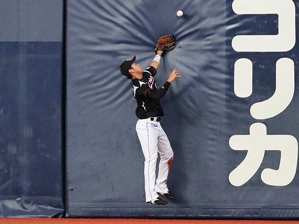 平沢はジャンプして捕球を狙うもあと一歩届かず