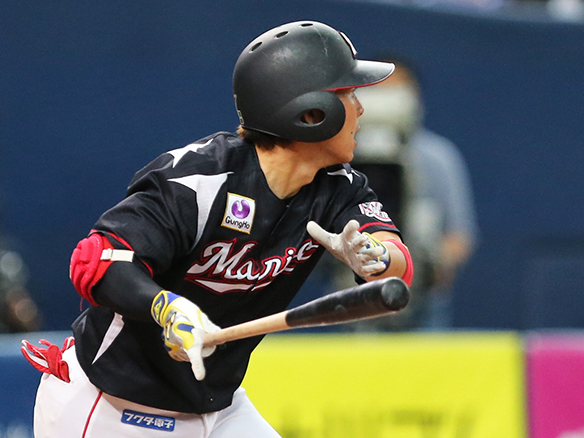 藤岡裕はチーム初安打となる一打を左翼線へ運ぶ!