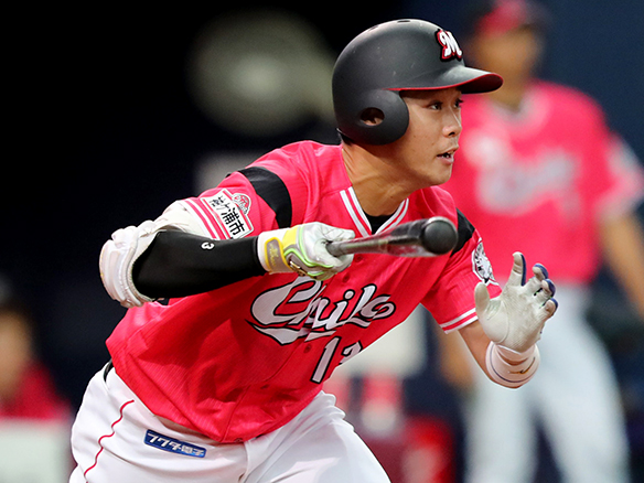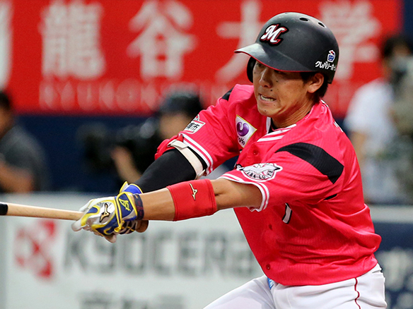 投手 唐川 8番 後藤 左安 低めのフォークをレフトへ打ってヒット 1塁 |