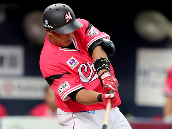 7番 ドミンゲス 左2 外角のカーブをレフトへ打ってツーベース 2塁 |