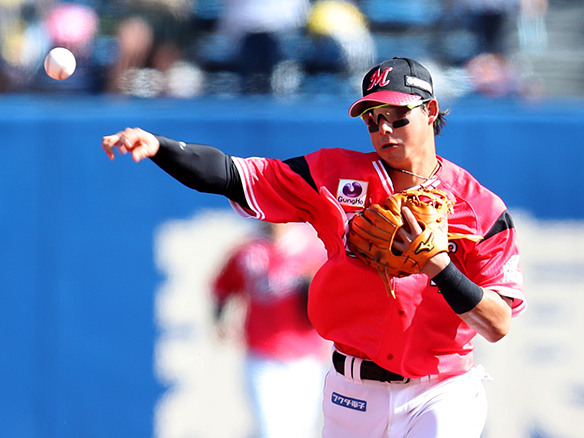 5番 アルシア 遊ゴロ 外角のフォークを打つもショートゴロ 2アウト |