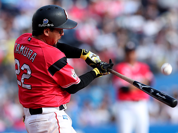 7番 レアード 左安 ランナー1塁 外角のスライダーをレフトへ打ってヒット 1,2塁 |
