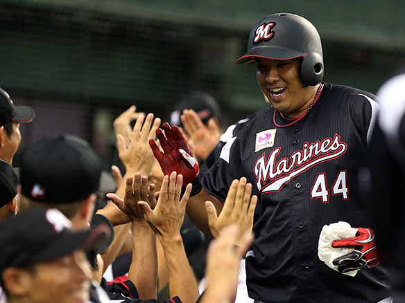8番 福浦 右安 ランナー1塁 外角高めのストレートをライトへ打ってヒット 1,2塁 |