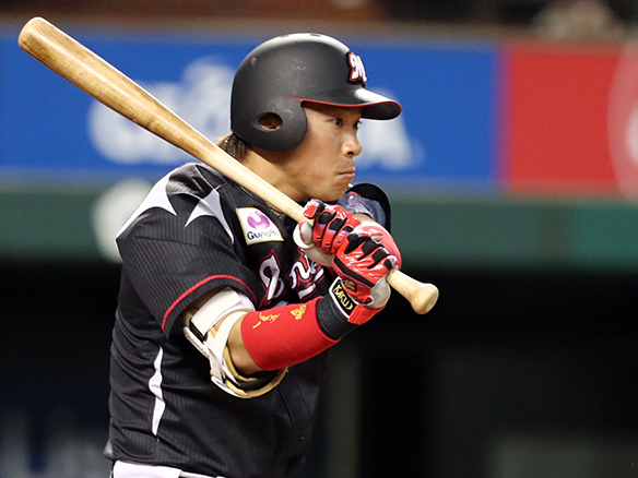 2番 藤岡裕 投安 151キロの内角高めのストレートをピッチャーへ打ってヒット 1塁 |