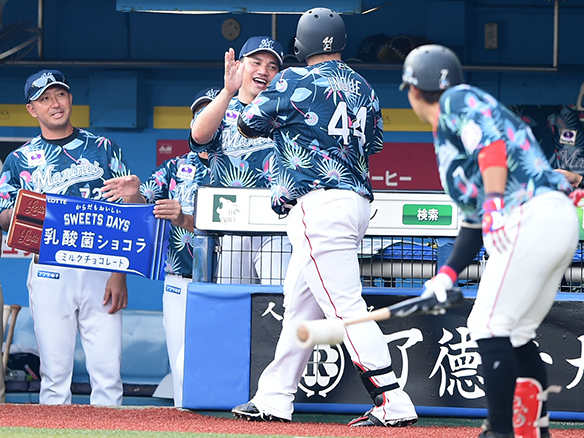 9番 枡田 左本 カウント1-1からレフトスタンドへ同点ホームラン! ロ2-2楽 ![]() 2