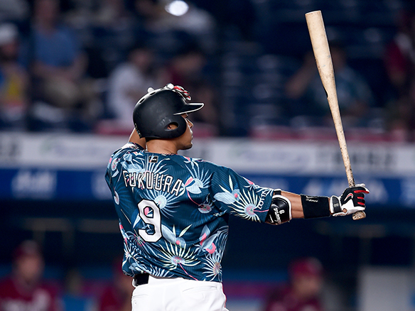 9番 福浦 左安 外角高めのストレートをレフトへ打ってヒット 1塁 |