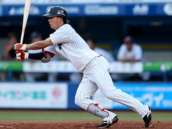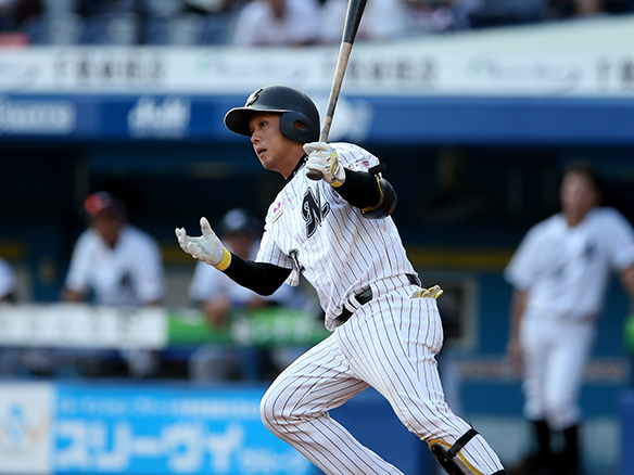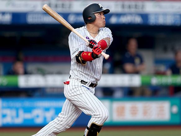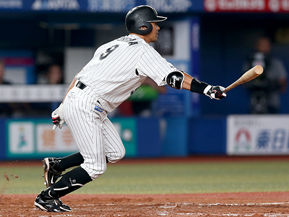 4番 井上 左安 内角のツーシームをレフトへ打ってヒット 1塁 |