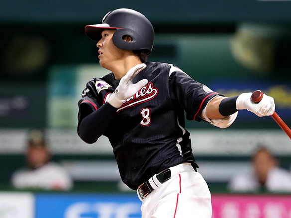 二死からセンター前ヒットを放った中村