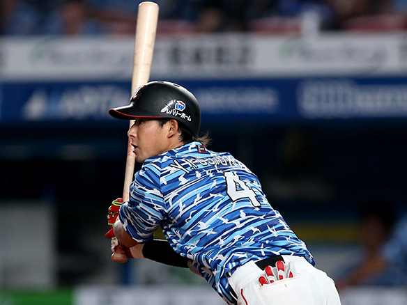 7番 栗山 左安 ランナー1塁 外角のシュートをレフトへ打ってヒット 1,2塁 |