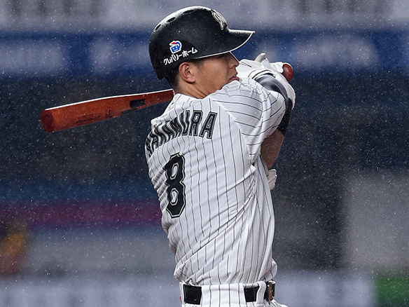2番 藤岡裕 遊ゴロ 外角低めのシンカーを打つもショートゴロ 2アウト |