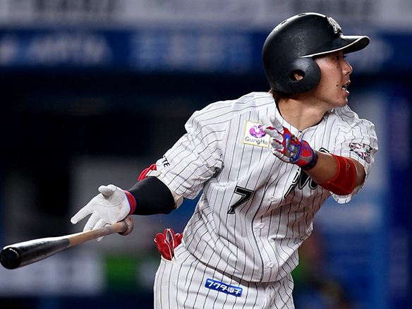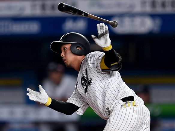 サードの頭を越える安打を放った中村