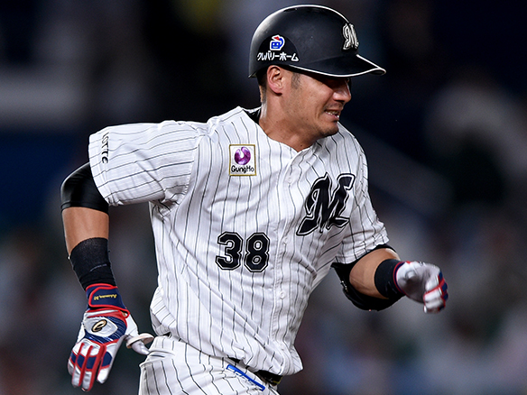 角中:森(投)の捕球ミスにより出塁する 1塁 |
