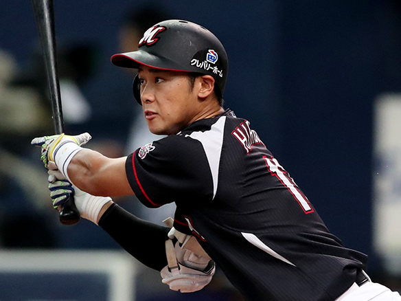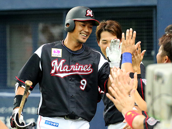 1番 福浦 右安 ランナー2塁 内角のストレートをライトへタイムリーヒット! 1塁 オ2-1ロ ![]() 2