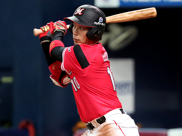 鈴木が初球を叩きチャンスを広げる安打を放つ