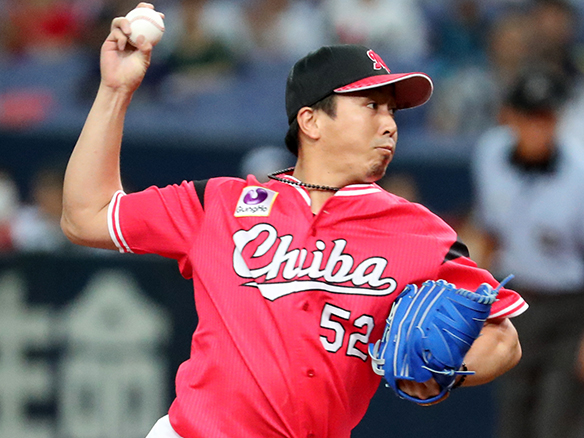 投手 種市 4番 吉田正 空三振 内角低めのフォークを空振り三振 1アウト |