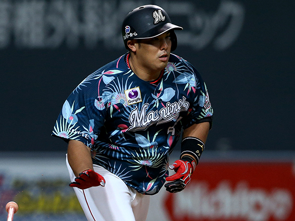 9番 中島卓也 一失 井上(一)のファンブルにより出塁する 1塁 |