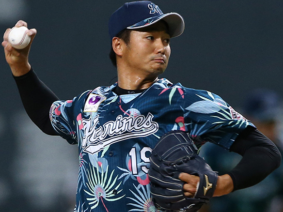 投手 酒居 6番 レアード 左飛 高めのフォークを打つもレフトフライ 1アウト |
