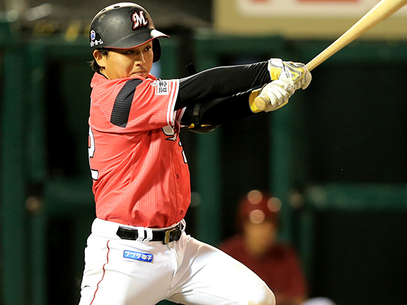 4番 井上 中安 ランナー3塁 高めのストレートをセンターへタイムリーヒット! 1塁 楽2-1ロ ![]() 2