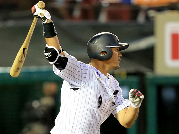 3番 中村 中安 ランナー1塁 外角のカットボールをセンターへ打ってヒット 1,2塁 |