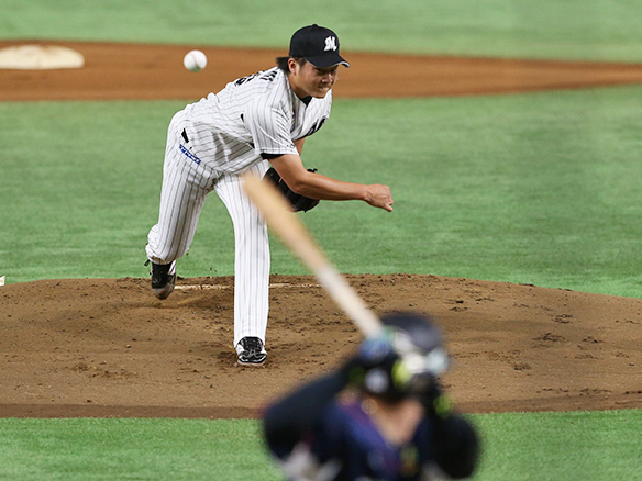 投手 多和田 7番 福浦 右飛 高めのストレートを打つもライトフライ 1アウト |