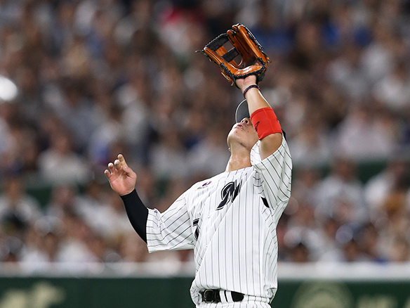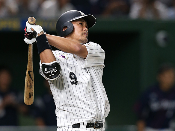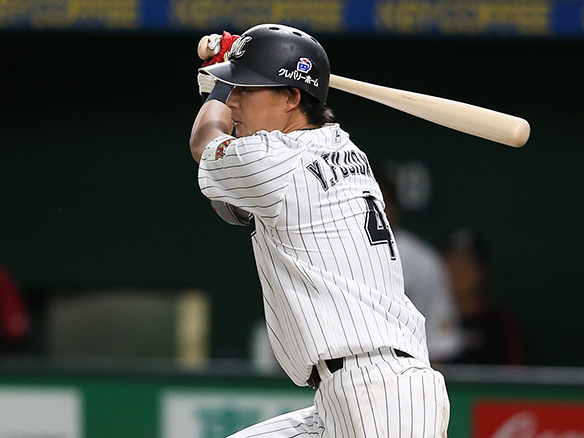 4番 山川 空三振 外角低めのスライダーを空振り三振 2アウト |