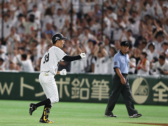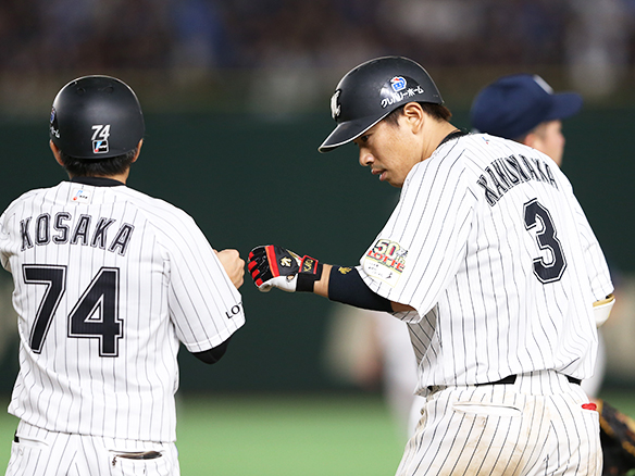 1番 秋山 右安 低めのチェンジアップをライトへ打ってヒット 1塁 |