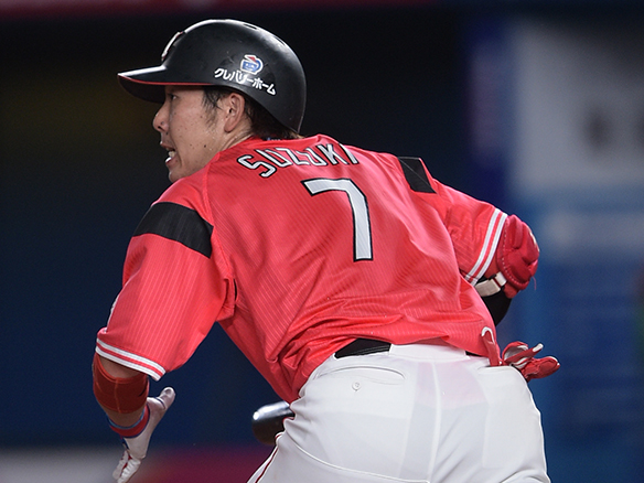 7番 金子侑 左安 ランナー1塁 ど真ん中のストレートをレフトへ打ってヒット 1,2塁 |
