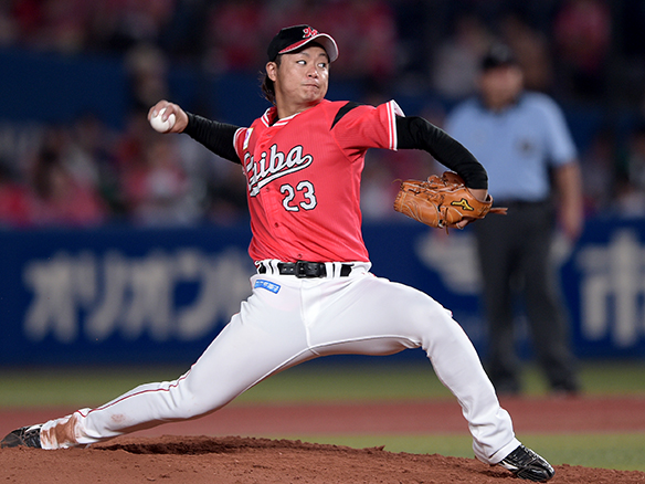 投手 今井 5番 角中 遊ゴロ 外角高めのストレートを打つもショートゴロ 1アウト |