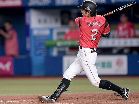 7番 根元 右安 ランナー2塁 内角のストレートをライトへ勝ち越しタイムリーヒット! 1塁 ロ3-2西 ![]() 3