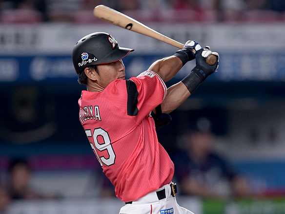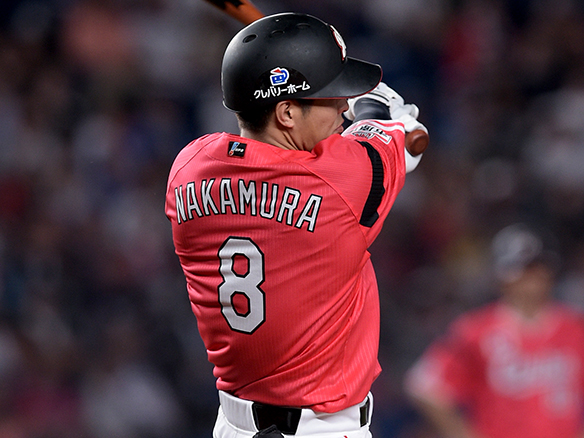 6番 外崎 中安 外角のカットボールをセンターへ打ってヒット 1塁 |