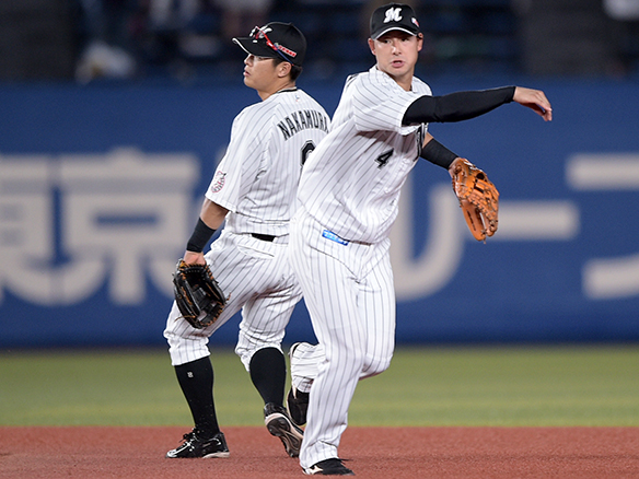 中村と藤岡裕が併殺を決める