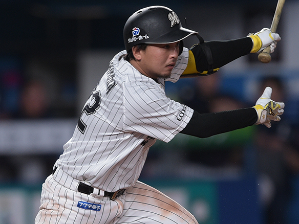 6番 外崎 投犠打 ランナー1,2塁 送りバント成功 2,3塁 1アウト |