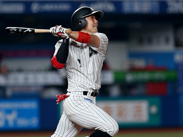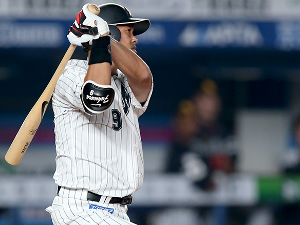 8番 栗原 左安 ランナー2塁 外角のスライダーをレフトへ打ってヒット |