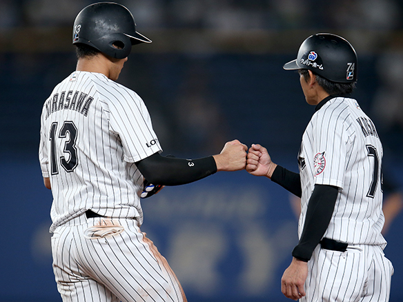 投手 五十嵐 守備変更:牧原→センター 守備変更:明石→セカンド 守備変更:福田→レフト |