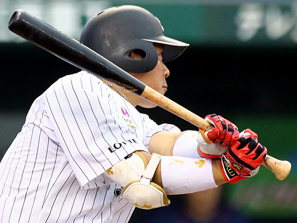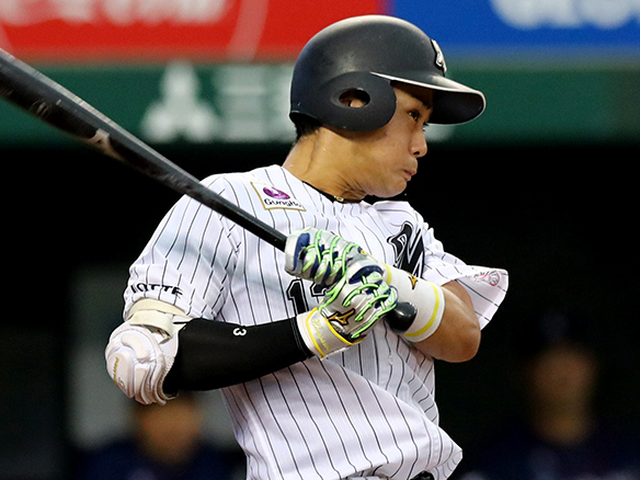 投手 十亀 1番 中村 左安 ど真ん中のカーブをレフトへ打ってヒット 1塁 |