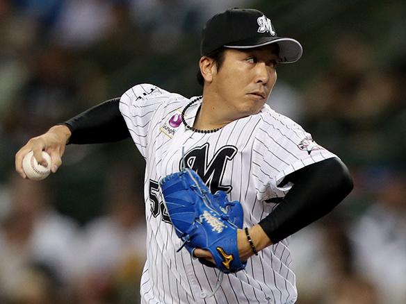 3番 角中 空三振 外角低めのシンカーを空振り三振 3アウトチェンジ |