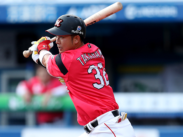 8番 山崎 中安 外角のカットボールをセンターへ打ってヒット 1塁 |
