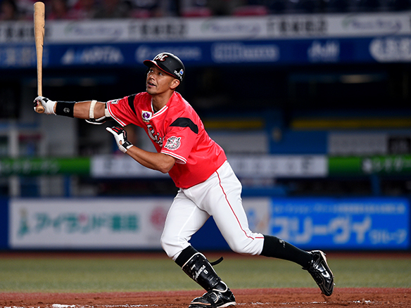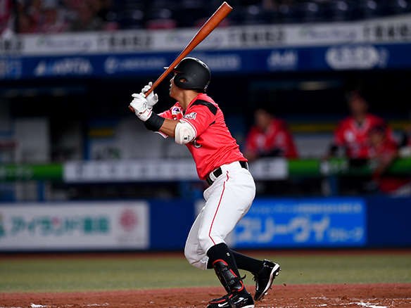 8番 松田宣 捕安 外角低めのスライダーをキャッチャーへ打ってヒット 1塁 |