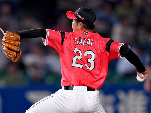 投手 酒居 1番 牧原 二ゴロ 低めのフォークを打つもセカンドゴロ 1アウト |