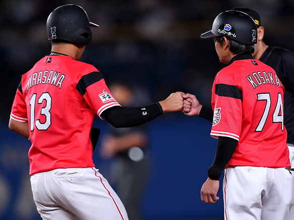鈴木(三)の悪送球により進塁する 2塁 ロ0-2ソ ![]() 0