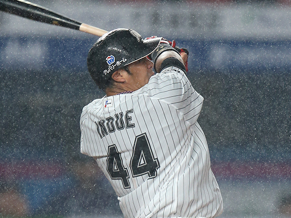 4番 井上 中飛 ランナー1塁 外角高めのスライダーを打つもセンターフライ 2アウト |