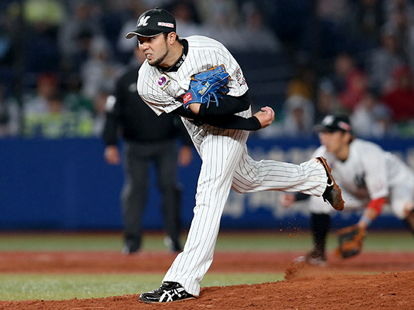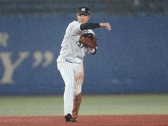 5番 角中 空三振 外角低めのスライダーを空振り三振 2アウト |