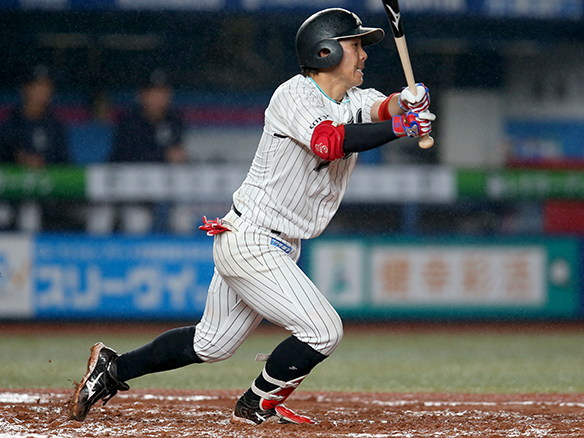 4番 山川 左安 ランナー1,3塁 内角高めのシュートをレフトへ先制タイムリーヒット! 1,2塁 ロ0-1西 ![]() 0