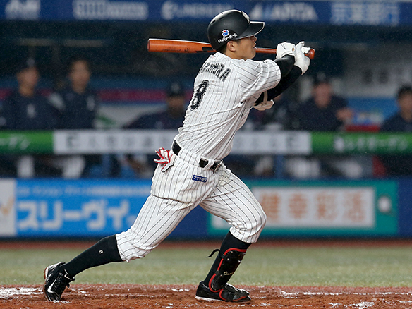 4番 山川 四球 フォアボールを選ぶ 1塁 |