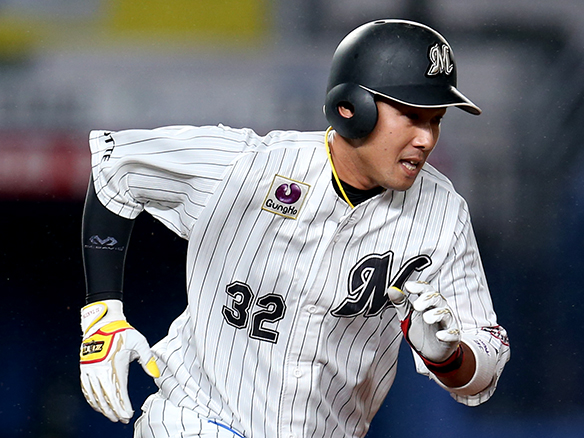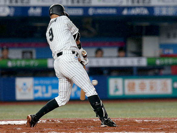 8番 福浦 左安 ど真ん中のストレートをレフトへ打ってヒット 1塁 |