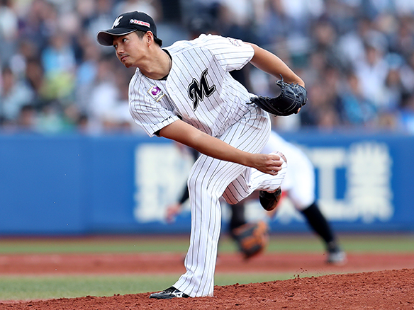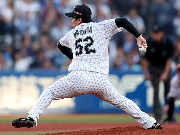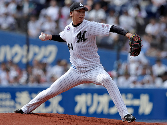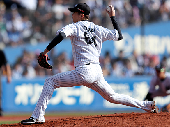 投手 二木 4番 山川 空三振 外角低めのスライダーを空振り三振 1アウト |