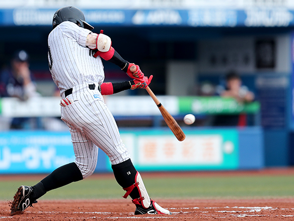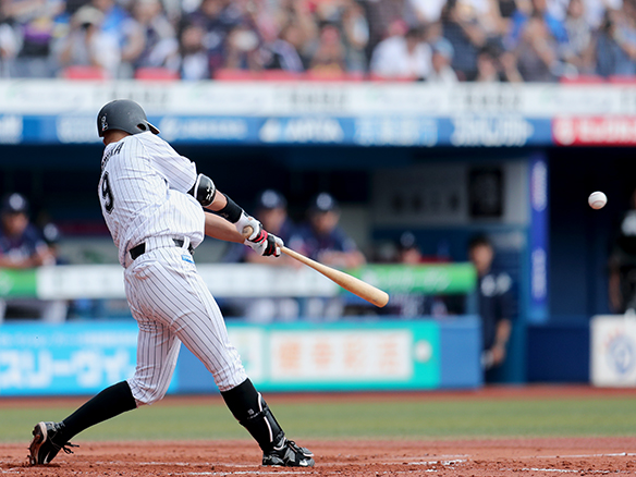 9番 金子侑 右安 高めのストレートをライトへ打ってヒット 1塁 |