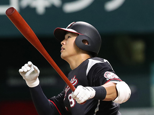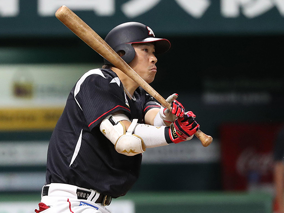 2番 明石 左安 外角高めのフォークをレフトへ打ってヒット 1塁 |