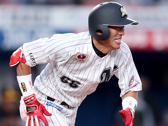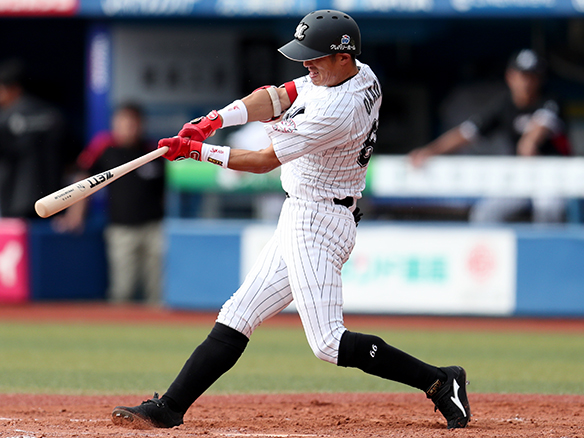 5番 角中 四球 フォアボールを選ぶ 1塁 |