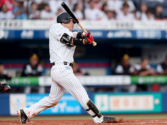 2番 藤岡裕 中安 内角のカットボールをセンターへ打ってヒット 1塁 |